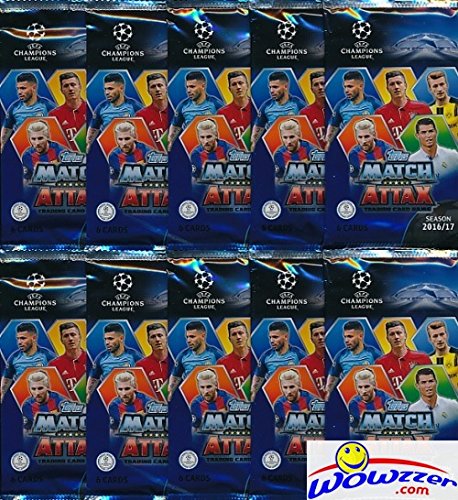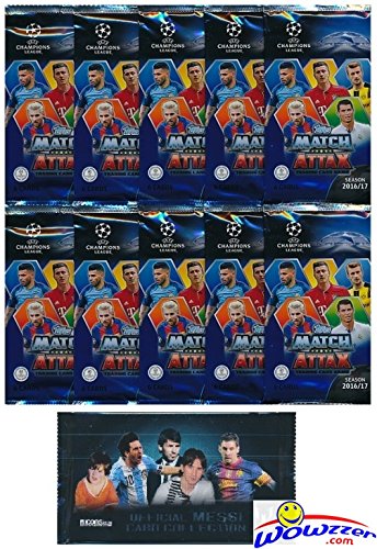 2016/2017 Topps Match Attax Champions League Soccer lot of (10) Factory Sealed Foil Packs with 60 Cards Plus BONUS Lionel Messi Pack! Look for Top Stars including Ronaldo, Messi, Neymar, Suarez & More