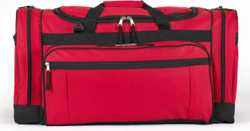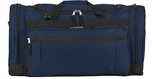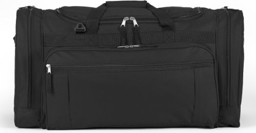 Product Description ZUZIFY 27-Inch Large Duffle Bag. UL0031 Whether it is a trip to the gym or a weekend in the country, this duffel makes a fine traveling companion. 600-denier polyester Two large side pockets with zippers Adjustable and detachable padded shoulder strap Large gusset front pocket Black contrast webbing Velcro handles Size: 27" x 13" x 14" 0