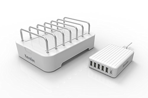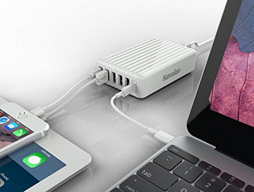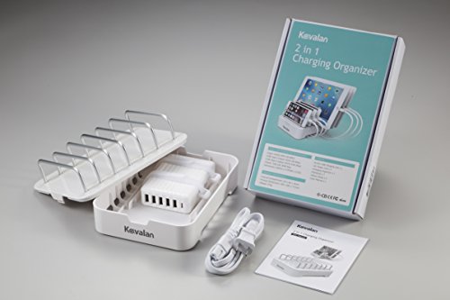 Kavalan: 6 Port USB Type A & Type C Charger (Total 60W) for iPhone 7 / 6s / Plus, iPad Pro / Air 2 / mini, Galaxy S7 / S6 / Edge / Plus, Note 5, LG, Nexus, HTC and More (White Hub + Organizer)