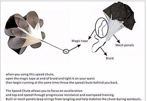 -. Binding : Misc. -. Brand : Tuliptown -. EAN : 0647904639143 -. Feature : Fully functional unit includes parachute and belt / Mesh panels provide stability and reduce shifting / Chute opens as running begins and attaches with an easy adjusting harness / Quick release strap provides easy release into overspeed / Easily folds down to fit in the carrying bag included, 25 lbs of resistance -. IsAutographed : 0 -. IsMemorabilia : 0 -. Label : Tuliptown -. Manufacturer : Tuliptown -. ProductGroup : Sports -. ProductTypeName : SPORTING_GOODS -. Publisher : Tuliptown -. Studio : Tuliptown -. Title : Tuliptown 56" Speed Resistance Training Parachute Running Chute Football Training Tool Hot -. UPC : 647904639143