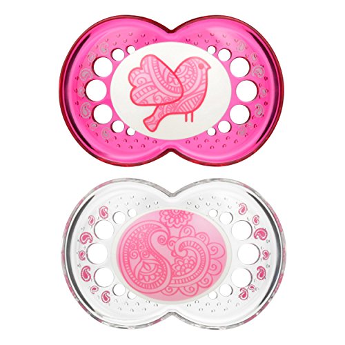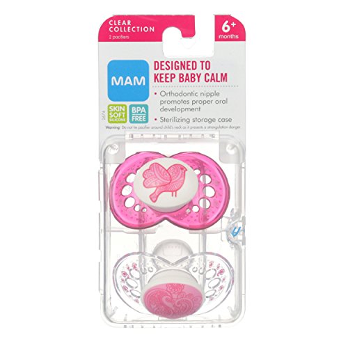 MAM Clear 2 Piece Orthodontic Pacifier, Girls, 6+ Months