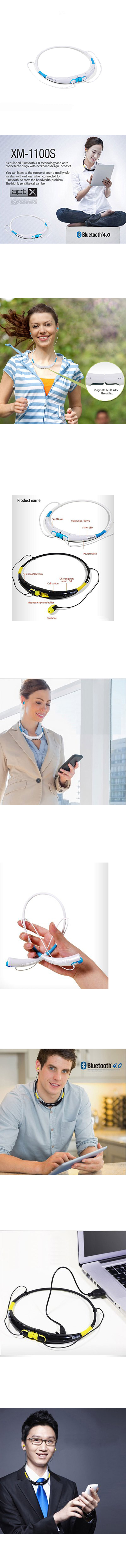 (Features) ?Bluetooth 4.0 Support : Supports A2DP, AVRCP, HFP with the Bluetooth 4.0 version. ?HiFi CD quality as aptX codec support : You can play high-quality as CD music by aptX codec support. ?Ergonomic neckband design : convenient to wear with neckband design of waterproof and an ergonomic design ?Earphone storage with magnetic specially designed : the earphone storage is easy with a magnet built in the earphone collar type ?Sensitive voice quality : you can speak clearly than 75dB signal to noise ratio with high-sensitivity microphone mounted ?Battery lasts a long time : It boasts more than 10 hours long battery talk time of 8 hours, standby time of approximately 100 hours. ?your smartphone is safe from electromagnetic waves : You can make a call safely from smartphone's electromagnetic waves . ?The ultra-lightweight weight without any pressure : Can be used without any pressure with a ultra-lightweight weight ?Charge Easy USB : You can be charged by connecting USB port with the microphone. ?Easy pairing : If turn on and wait 2-3 seconds, you will hear message from earphones with blue and red LED is cross flashing ?vibration notifications when receiving a call : when receiving a call, you just know the incoming call with a beep and vibration. ?Redial function : Press the call button twice continuously dialing, auto dialing is supported on the last outgoing phone number. ?Flexible material adopted : Is made of soft and flexible material, is reinstate although badly bent.