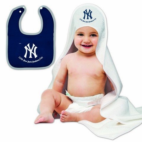 - Feature : Officially licensed by the New York Yankees / Officially licensed by the MLB / Top Quality, Manufactured by McArthur. Washable / Includes 1 bib, 1 hooded baby towel / Imported, decorated in the USA.