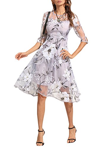 Title : Floerns Women's Floral Mesh A-Line Knee Length Swing Cocktail Dress Grey S