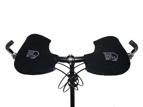 Studio : Bar Mitts Publisher : Bar Mitts Binding : Sports Product Description Bar Mitts are Bicycle Handlebar Mittens that attach to your mountain/commuter/flat style handlebars. The Bar Mitts keep your hands warm while riding and allow you to use more lightweight gloves, increasing dexterity, even in the coldest of weather. Also, people who suffer from Raynaud's or numb, cold hands due to the cold, wind, rain or snow can continue to ride and train throughout the Fall and Winter. Bar Mitts stay secure on the handlebars while riding and stay open allowing your hands to slide in and out without difficulty. Getting in and out of the Mitts is a natural movement. Braking and shifting is also easily accomplished. Bar Mitts are easily installed and removed. Bar Mitts are made of neoprene, a synthetic rubber often used for waterproofing or weather resistant clothing (wetsuits). The neoprene has a closed cell construction, meaning it is filled with closed air bubbles. These bubbles serve as insulation. Since the cells are closed, the neoprene itself is waterproof. The thickness of the neoprene is 5.5 mm with nylon laminated on each side. 0