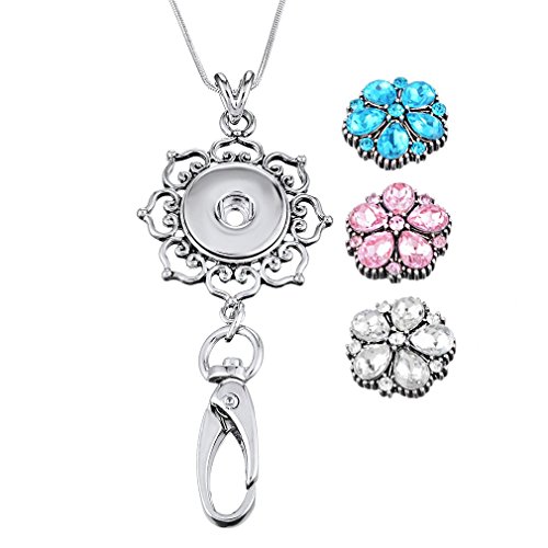 Souarts Womens Office Lanyard ID Badges Holder with 3pcs 5.5mm Size Flower Snap Charms Jewelry Pendant Clip