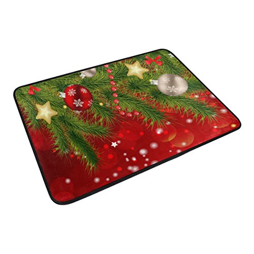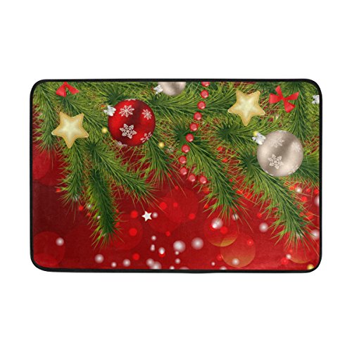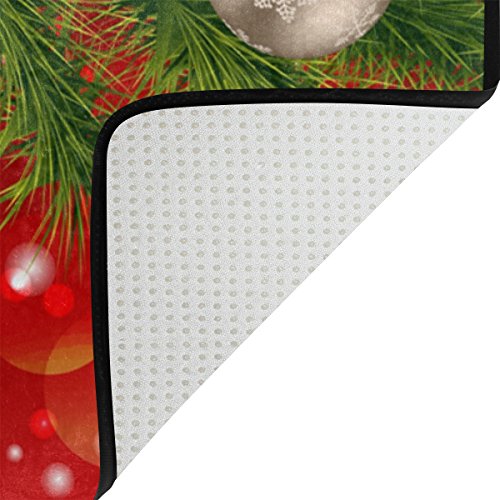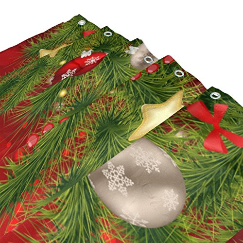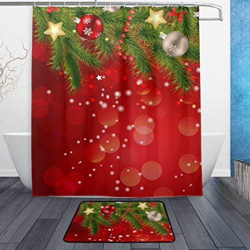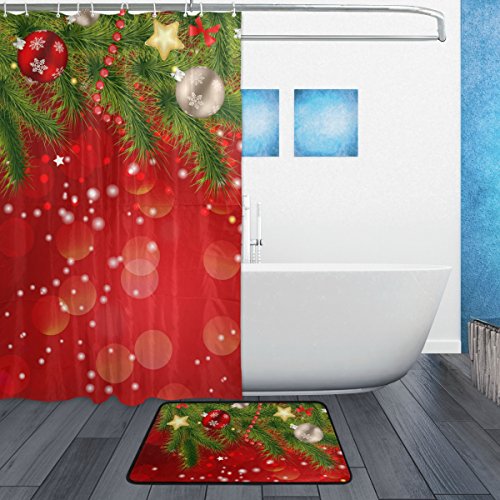 ALAZA Set of 2 Happy Holiday 60 X 72 Inches Shower Curtain and Mat Set, Christmas Ornaments Waterproof Fabric Bathroom Curtain and Rug Set with Hooks