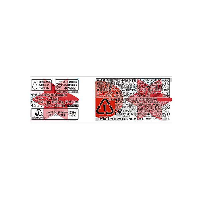 원본상품명: コカコラ いろはす 天然水 りんご ペットボトル 555ml×24本