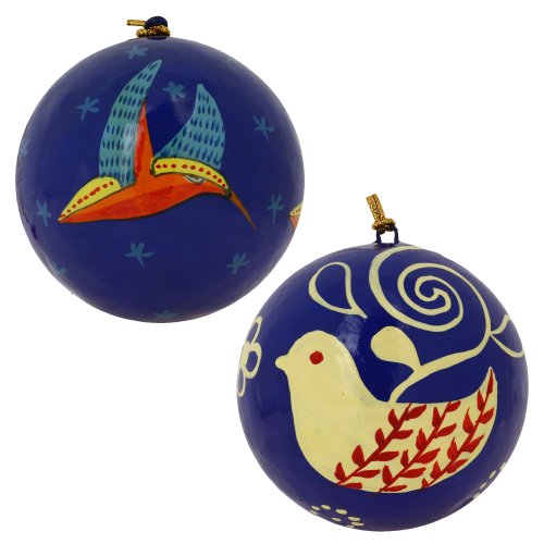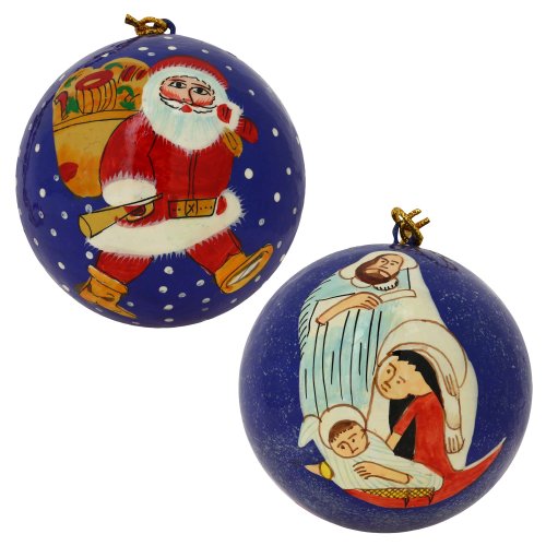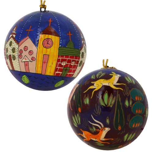 - Feature : - Collection of Christmas ornaments expertly handmade in the Kashmir region of India / - Complete set of one dozen hand painted ornament with 12 unique scenes / - Constructed out of lightweight paper mache / - Each decoration measures 3 inches in diameter / - Top loops included for hanging
