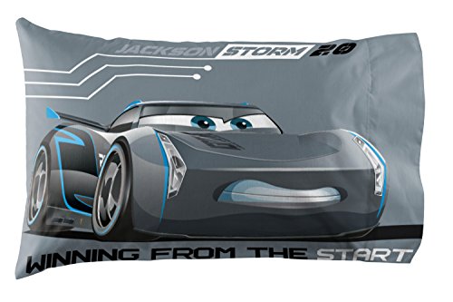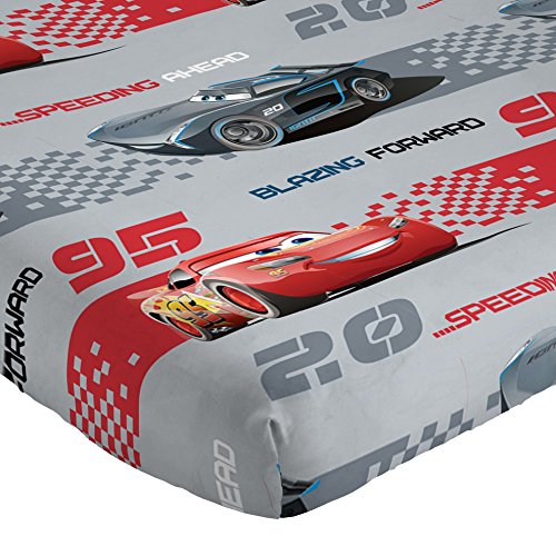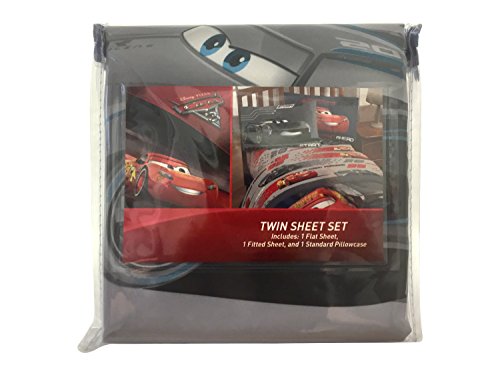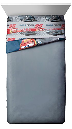 Disney/Pixar Cars 3 Movie Editorial Gray/Red 3 Piece Twin Sheet Set with Lightning McQueen & Jackson Storm (Official Disney/Pixar Product)