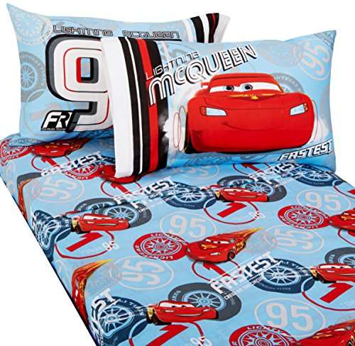 Disney/Pixar Cars 95 Twin 3 Piece Blue Sheet Set with Lightning McQueen (Official Disney/Pixar Product)