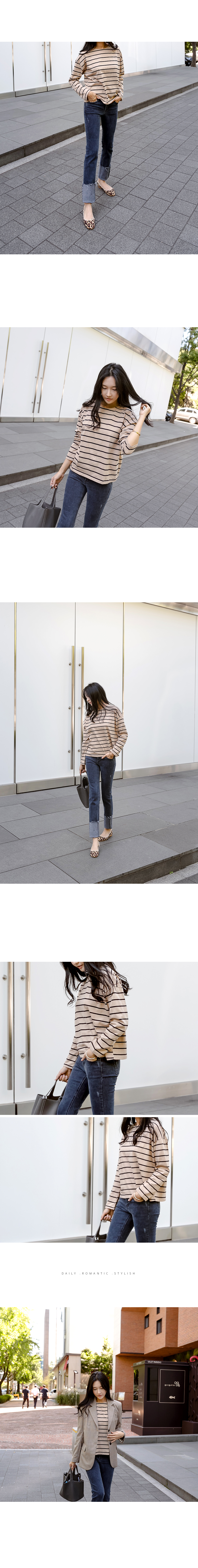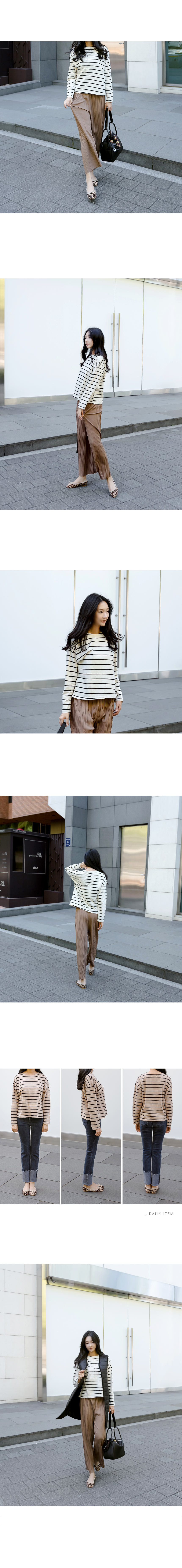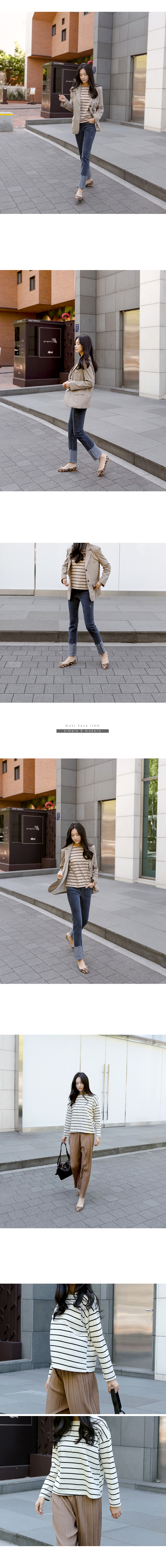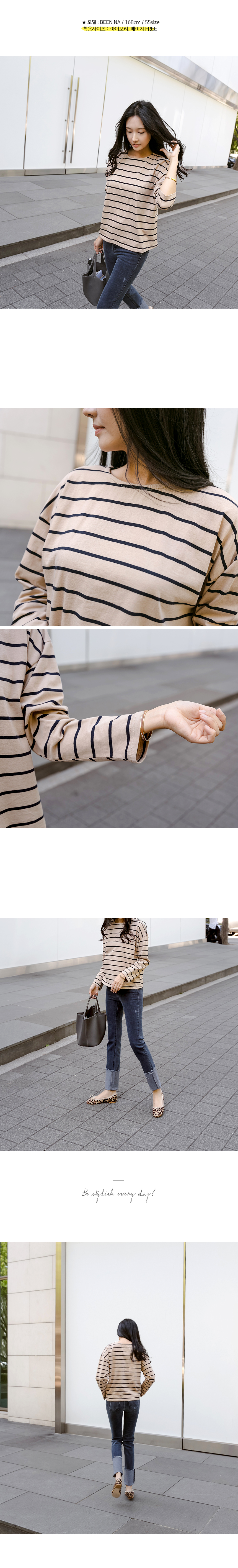 편안한 핏의 스트라이프 코튼 티셔츠한겨울까지 이너로 입기 좋은 편안한 두께감과 핏의 스트라이프 티셔츠예요.골반 선을 살짝 덮는 산뜻한 길이감과 과하게 크지 않아 이너로 입기 부담 없는 편안한 무드의 데일리 아이템이랍니다~색상은 아이보리, 베이지, 머스터드, 블랙사이즈는 FREE 55~66반까지 가능하답니다.
