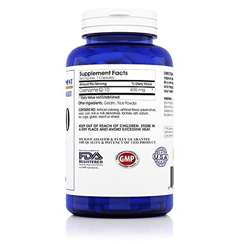 MAXIMUM STRENGTH 400MG PER CAPSULE - Our most popular supplement delivers 400 mg of 100% pure coenzyme Q10 (CoQ10) per daily serving. Our high absorption CoQ 10 formula is naturally sourced and contains 400mg per serving.*