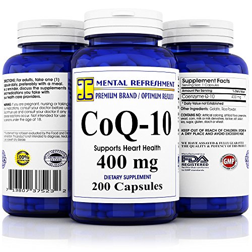 BEST VALUE ON AMAZON - 200 CAPSULES - 400MG each - Over 6 month supply. One bottle of our product contains 200 capsules of extra strength CoQ10 providing you with 200 days of our product. Our competitors offer significantly less capsules at lower concentrations. With our Mental Refreshment Brand of Co Q-10 you buy fewer bottles saving you money and time.*