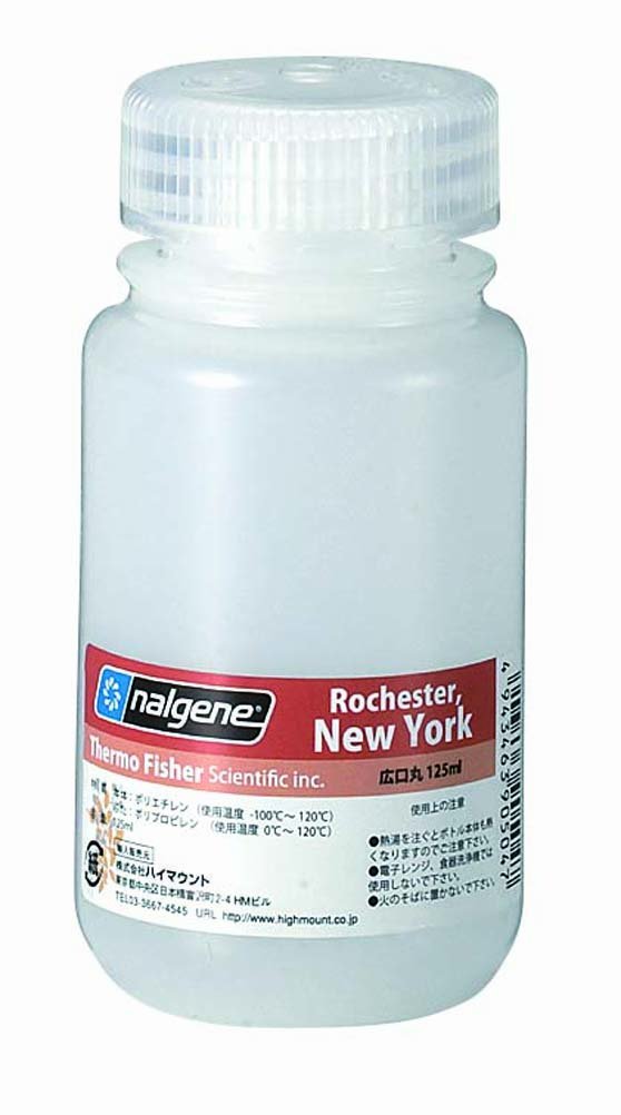 A representative bottle of Nalgene bottle that is used in a wide range of fields from laboratories to kitchens.