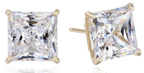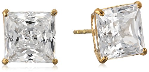 -. Feature : Classic gold stud earrings featuring P.R.Incess-cut Swarovski Zirconia stones / Friction-back posts / Made in the USA