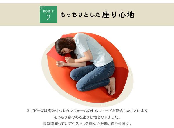 ●従来のビーズクッションと比較してへたりにくい!のがこのスゴビーズの特徴。