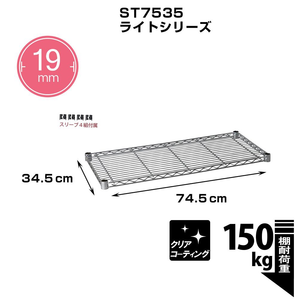 Luminous pole diameter 19mm parts for shelf plate steel shelf (load capacity 150kg) 1 sheet wire width direction (with sleeve) width 74.5 × depth 34.5cm ST7535