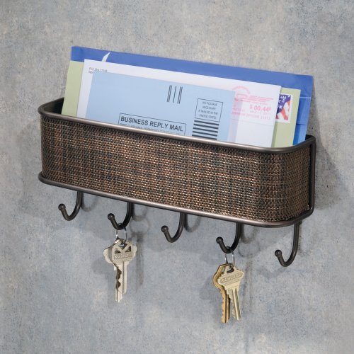 InterDesign Twillo Mail, Letter Holder, Key Rack Organizer for Entryway, Kitchen - Wall Mount, Bronze