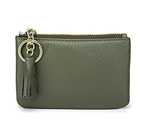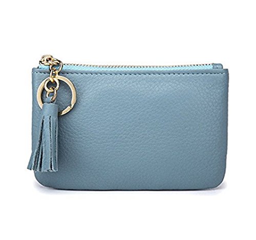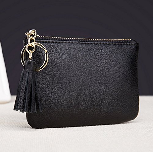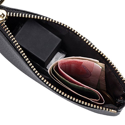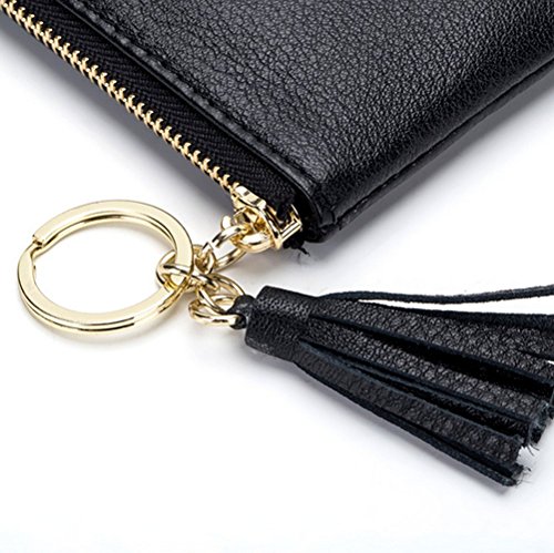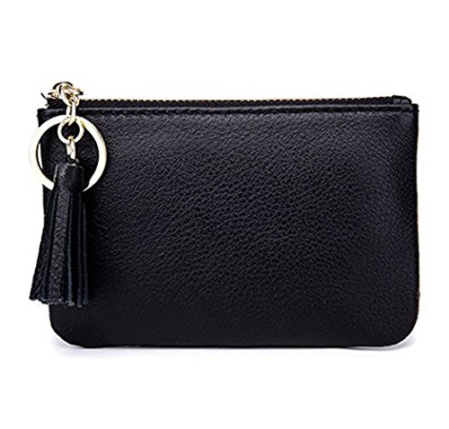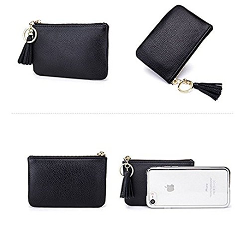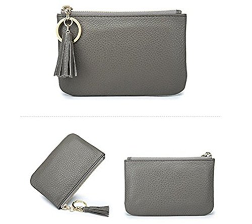 Product Description Genuine top-grain cowhide leather, soft, durable and comfortable Wide and Thin: 4.9" x 3.4" x 0.4" (12.5cm x 8.5cm x 1.0cm) 1 wide zipper pocket, more convenient for coins or cards in and out Gold metal zipper with Leather Tassels tab, sturdy, smooth and stylish. Build-in key chain/ring, will not lose the keys as they are attached to your wallet. 0
