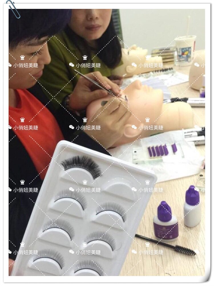 为了保护头模,在进行嫁接练习时可适当添加隔离眼贴或者无纺布隔离胶带等种植工具,使胶水不易沾到头模上,同时也具有实战意义