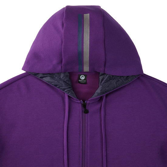 - 후드 이면 폴리 소재를 적용하고 컬러 라인 배색으로 디테일 포인트.