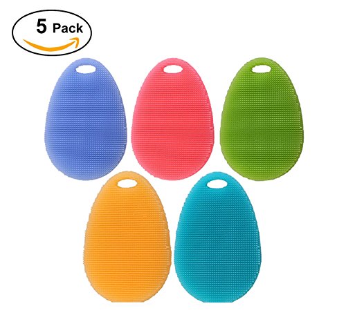 5Pcs Soft Silicone Dish Washing Cleaning Brush Plate Bowl Scrubber Fruit Vegetable Cleaner Heat Resistant Sponge Pad Multifunctional Kitchen Gadget