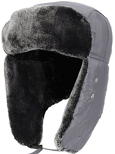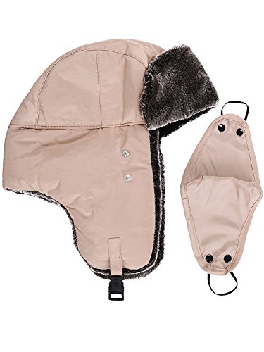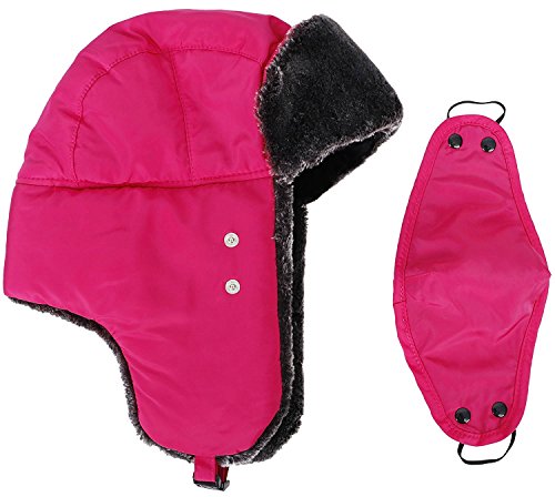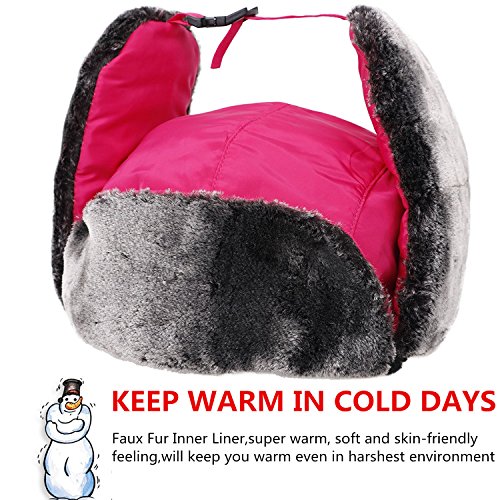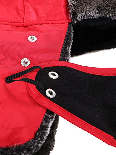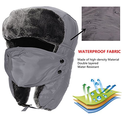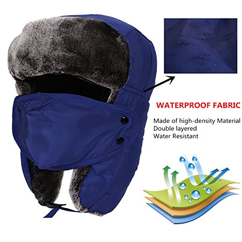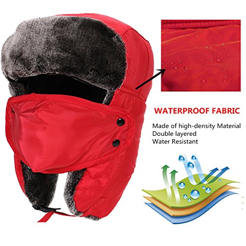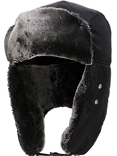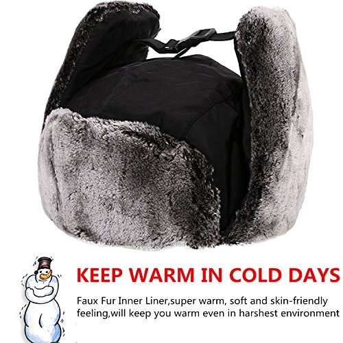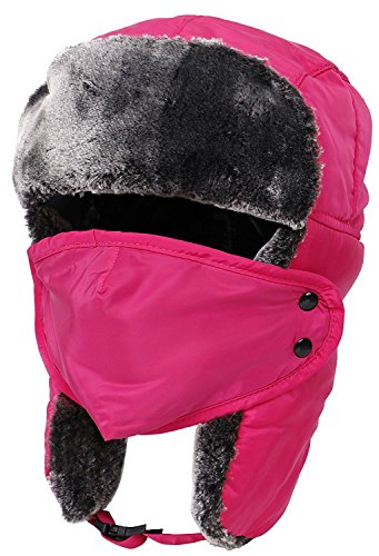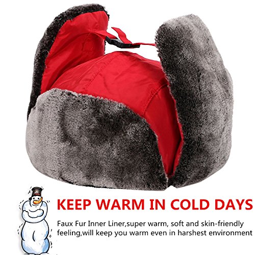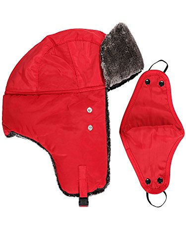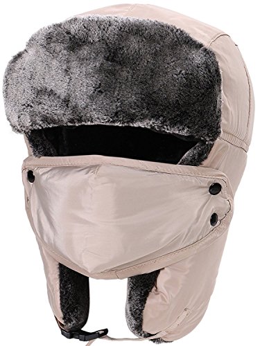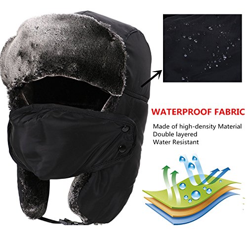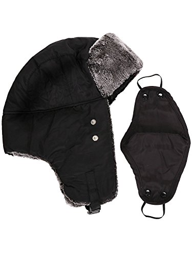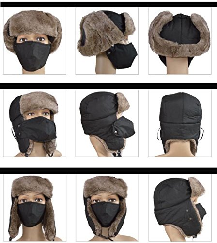 Classic Trooper Hat---Could be attached under the chin or you could flip the side flaps up and attach it over the head and even remove the mouth Cover allowing this to be worn also without the full coverage. Mutli-function Cap-- Perfect for Hunters, Trappers or Any Other Winter Outdoor Activities, Like Hiking,Ski, Snowboard, Climbing, Fishing, Hunting, or Suit for Party Gift(Halloween,Christmas,Thanksgiving,New Year ). One size fits all---easily fits, stays comfortable and is a perfect fit for men, women . The exceptionally breathable fleece hood adds to the overall comfort. Extremely breathable fleece hood is you best partner on the road in bitter-cold conditions. Adjustable buckle design--easy to use; windproof mask, keep your face and ears warm in winter, as well as against the wind Unisex Trapper Hat for All--The hat is suitable for men and women, and also for all kinds of winter wear.Whether you are hunting in the woods,playing outdoors or heading out into town on a winter's evening, ,this hunting hat will provide you with the warmth that you need. High quality faux fur inner liner- -Faux fur lining provides you with warmth and comfort.Polyester outer shell makes the hat clean easily, no pilling 0