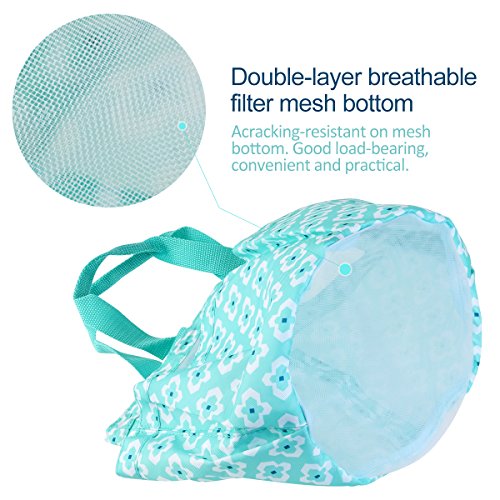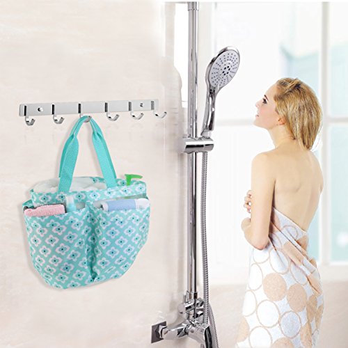 - TOP-QUALITY MATERIALS AND STITCHING. The bag has sturdy double-woven handles so you can hang it inside or outside the shower. The quick-drying inner and outer fabrics resist mildew and odor.