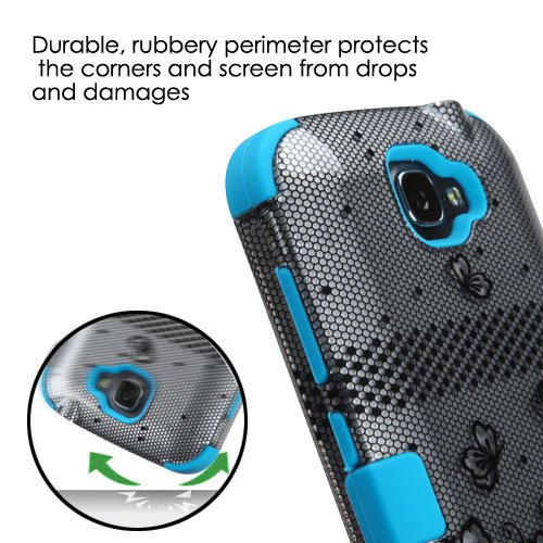 Alcatel One Touch Fierce 2 Case, Rock Me Wireless (TM) 2 items Bundle - 24K Gold Plating Electromagnetic Waves Blocking Sticker and Triple Layers Protective Case for Alcatel One Touch Fierce 2 7040T. (Lace Flowers (2D) / Teal)