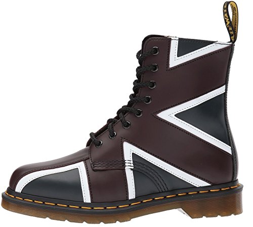 Studio : #Dr Martens Publisher : #Dr Martens Binding : Apparel Product Description We're British to the core - so in celebration of our heritage, we've wrapped our 8-eye Pascal in a Union Jack design, with muted hues of navy, white and oxblood. As a reflection of both our deep cultural ties to our homeland and our rebellious nature, this might be the most punk boot we make. 0