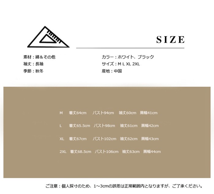 Tシャツ メンズ 長袖 メンズ Tシャツ 大きいいサイズ Vネック インナー ストレッチ 2018新作登場 送料無料 カットソー メンズ 長袖 ニットトップス 送料無料商品詳細素材:綿&その他袖丈:長袖季節:秋冬カラー:ホワイト、ブラックサイズ:M L XL 2XL産地:中国サイズ参照表M 着丈64cm バスト94cm 袖丈60cm 肩幅41cmL 着丈65.5cm バスト98cm 袖丈61cm 肩幅42cmXL 着丈67cm バスト102cm 袖丈62cm 肩幅43cm2XL 着丈68.5cm バスト106cm 袖丈63cm 肩幅44cmご注意:個人採寸のため、1~3cmの誤差は正常範囲内となりますが、ご了承ください。Tシャツ メンズ 長袖 ニットセーター メンズ Tシャツ 大きいいサイズ Vネック インナー ストレッチ 2018新作登場 送料無料 カットソー メンズ 長袖 ニットトップス 送料無料