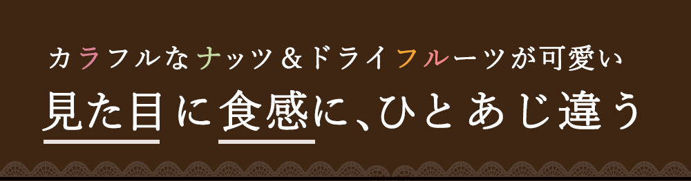 原材料名 砂糖、ココアバター、脱脂粉乳、全粉乳、カカオマス、オレンジ、胡桃、カシューナッツ、マカダミアナッツ、アーモンド、クランベリー、レーズン、乳化剤(大豆由来)、クエン酸、香料、(原材料の一部に乳、大豆を含む)