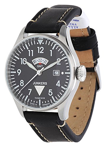 JUNKERS COCKPIT JU52 6140-2 QUARTZ GMT WATCH WITH SWISS MOVT 50M WR BLACK DIAL
