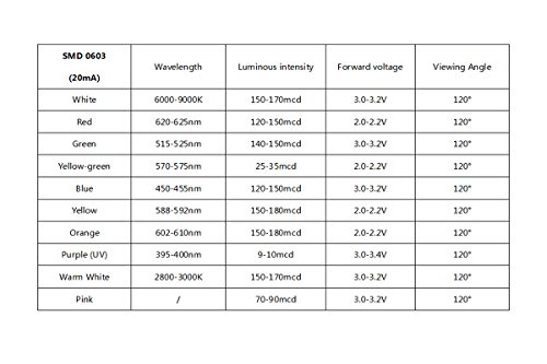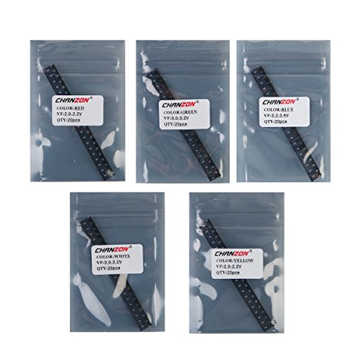 Chanzon (5 Colors x 20 pcs = 100 pcs) 0603 SMD LED Diode Lights Assorted Kit (Mini Chip 1.6mm x 0.8mm for PCB DC 20mA) Super Bright Lighting Bulb Lamps Electronics Components Light Emitting Diodes