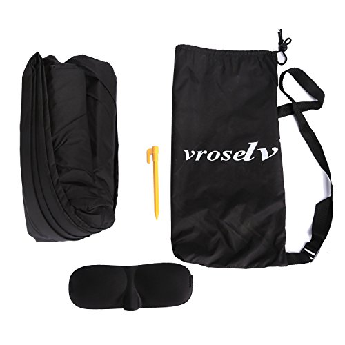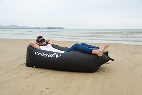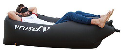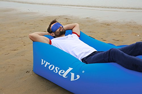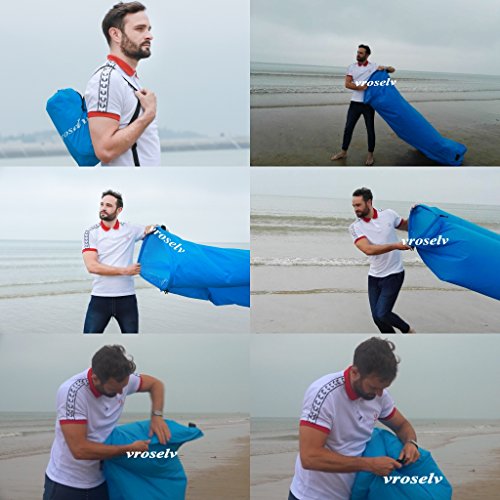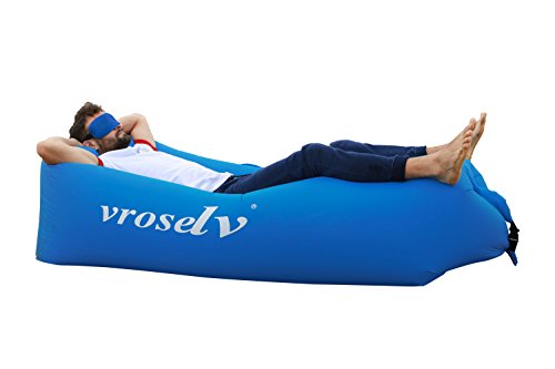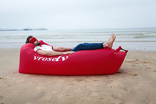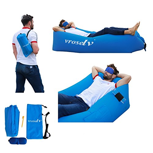 Studio : VROSELV Publisher : VROSELV Product Description UNPARALLELED QUALITY - Made up of 210T Nanometer Nylon parachute fabric is more bettler than the 210D Our air sofa or camping sofa is highly tear-resistant burst-resistant, and can easily support the weight of heaviest of the individuals (even 2 persons: upto a maximum of 400 lbs). Moreover, the water-proof design, comfortable touch and feel, and the inclusion of a stake that can be used to secure the lounger firmly in a place even on a windy day makes it one of the best choices for portable travel furniture/sofa. How to use it: Step 1: After you get the lounger to where you want to set it up, go ahead and unroll it so that it is fully extended Step 2: There is one air intake chamber on the lounger. Be sure to open the intake, and then stick your arm inside to separate the inner air bladder as it can stick together slightly when rolled up for extended periods of time. This allows you to capture the most amount of air with the least amount of effort. Step 3: Run a few steps while holding the air bladder intake open to "scoop" air into the mouth. IMPORTANT:Run in a straight line and close the mouth before you stop running to hold the air in. Repeat a time or 2 until you notice the lounger starting to fill up. Running in a circle will push the air out and make you look not near as cool! Step 4: While holding the lounger ends closed roll the chamber in the same direction until the lounger is nice and firm. We made the lounger over 9' long so you can roll it clear to our logo while still having well over 7' of relaxation room! IMPORTANT; Roll, Roll, Roll - This is where most people go wrong, so don't be that guy Step 5: Grab Both of the plastic clips and bend them together towards the side of the lounger.;You are going to make an oval with the plastic ends of the lounger. After bending the plastic pieces into the oval shape, simply secure the plastic clip together and get ready for the most in depth step of them all! 0
