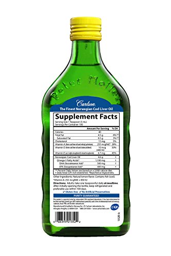 Carlson Cod Liver Oil in lemon flavor has received numerous awards for its taste and quality. A single teaspoon provides 1,100 mg of omega-3s, including EPA and DHA, which support heart, brain, vision, and joint health. To ensure maximum freshness, Cod Liver Oil is closely managed from sea to store. We source the highest quality Arctic cod off the coast of Norway using traditional, sustainable methods. The same day they're caught, our cod are transported to a highly regulated Norwegian facility for processing and purification. Carlson Cod Liver Oil is bottled with a touch of vitamin E and air is removed to prevent oxidation. It's then delivered to us and is tested by an FDA-registered laboratory for freshness, potency, and purity.Feature