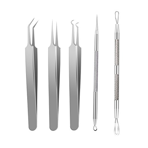 -. Title : 5 PCS Acne Remover Kit,Comedone Extractor Tool Set,Blackhead Removal Tweezers Kit, Treatment for Pimple, Blemish, Whitehead Popping, Silver