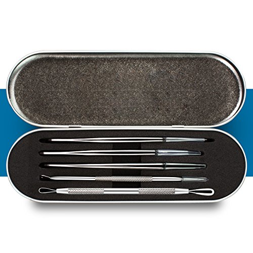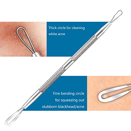 -. Feature : High Quality - Made of surgical grade anti-microbial stainless steel with guarantees of reliable performance,that means it will not cause allergies and works on all types of skin / Multi-function Kit - 5 different extractors with different size loop and shape make you swiftly and effectively get rid of your pesky blackhead,acne and pimple with no irritation / Practical Needles&Tweezers - Blackhead remover kit can help to remove blackheads, acne and various blemishes to keep your face clean and smooth / Worry Free Instruction - Learn how to get rid of acne blackhead just by reading the instructions inside the case.Comes with a small case with an instruction included,portable enough for carrying everywhere / Attention - Overuse may cause some irritation and potentially some scarring.Careful and proper usage will definitely improve the look and feel of your skin
