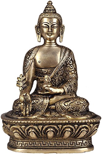 Bhaishajyaguru - The Medicine Buddha (Robes Decorated with Auspicious Symbols) - Brass Statue