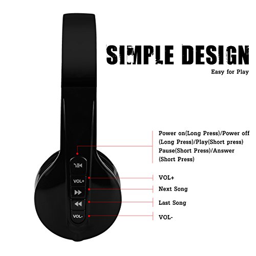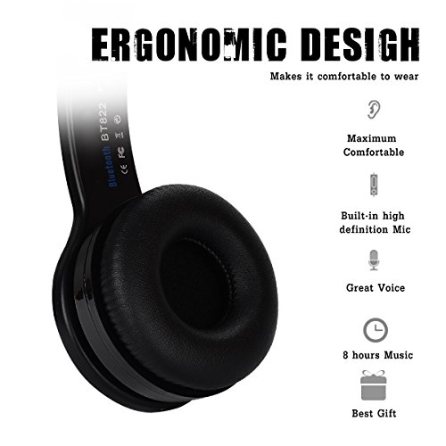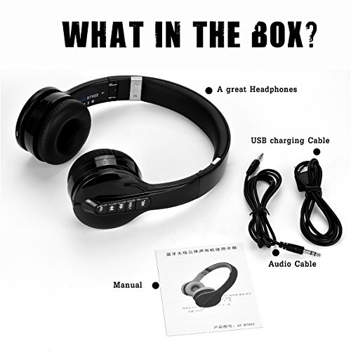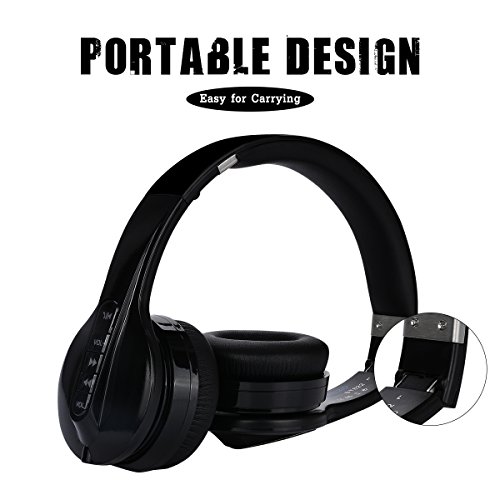 Aita BT822 Foldable Wireless Headphones, Bluetooth Over-ear Headset with Mic, Strong Bass Noise Canceling for iPhone 7 7 Plus 6 6 Plus 6s iPad iPod Smartphone etc. For Kids and Adult (Black)