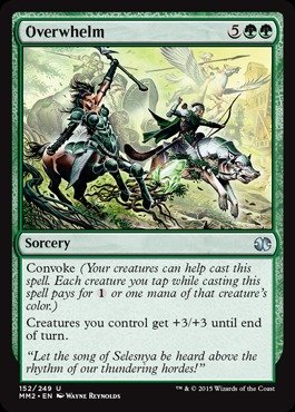 -. Binding : Toy -. Brand : Magic: the Gathering -. EAN : 0738345502674 -. Feature : Magic: the Gathering - Overwhelm (152/249) - Modern Masters 2015 / Green -. Label : Wizards of the Coast -. Manufacturer : Wizards of the Coast -. MPN : 5502674 -. PackageQuantity : 1 -. PartNumber : 5502674 -. ProductGroup : Toy -. ProductTypeName : TOYS_AND_GAMES -. Publisher : Wizards of the Coast -. Studio : Wizards of the Coast -. Title : Magic: the Gathering - Overwhelm (152/249) - Modern Masters 2015 by Magic: the Gathering -. UPC : 738345502674