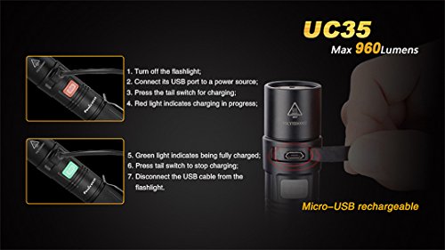 Fenix UC35 960 Lumens Rechargeable LED Tactical Flashlight with 3200mAH Battery and LumenTac Adapters