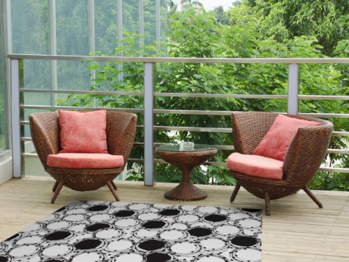 Kess InHouse Nandita Singh "Beaded Bangles" Black White Indoor/Outdoor Floor Mat, 4-Feet by 5-Feet