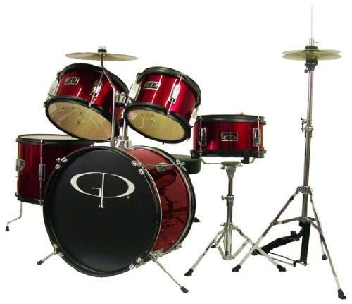 GP Percussion GP55WR 5-Piece Junior Drum Set with Cymbals and Throne in Metallic Wine Red