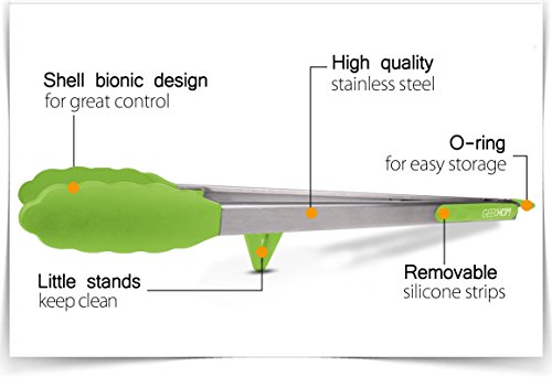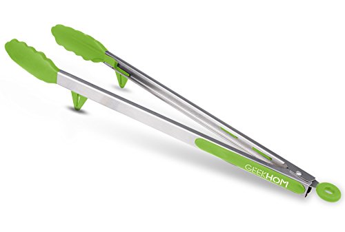 Studio : GEEKHOM Publisher : GEEKHOM Product Description Why choose GEEKHOM silicone BBQ tongs? Silicone tipped tongs are better antiskid compare to stainless still tongs, thus your food won't slip down easily which is really awful thing while barbecue. The Soft Non-slip handle grips let you hands feel better anytime.