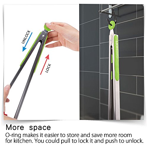 What's GEEKHOM unique design? -16 Inch keep your hand a comfortable safe distance, best choose for BBQ Serving. -1 Inch high built-in Stand constructed using Sturdy Heat-resistant material, you don't need to worry if it will fall down or melt easily. -Premium stainless steel with scalloped Silicone heads for easy to easy to lift and turn meat or vegetables on the grill. -"O" Ring for convenient locking and easy hanging. (Pull out to lock and push in to use) -100% FDA Grade and BPA Free , Dishwasher safe.