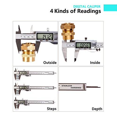- Absolute accurate in measurements & conversions - This vernier caliper allows you get the accurate data by using internal, external, diameter, step and depth measurements in SAE, metric or fractional. Calibrated to within 0.0005 inches, 0.01mm or 1/64” in fractions. Fix the faces in place and set to zero for differential measurements. Adtionally fetures automatic power save on/off and low battery warning function.