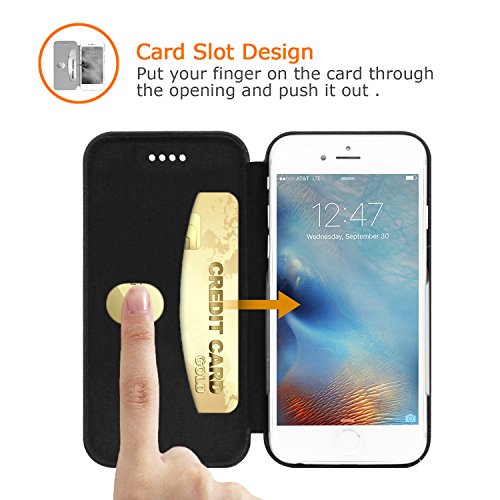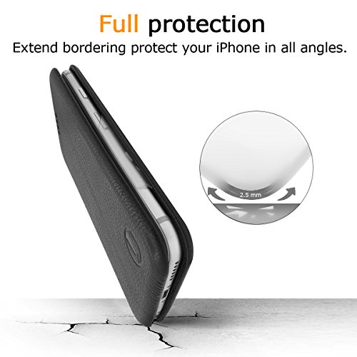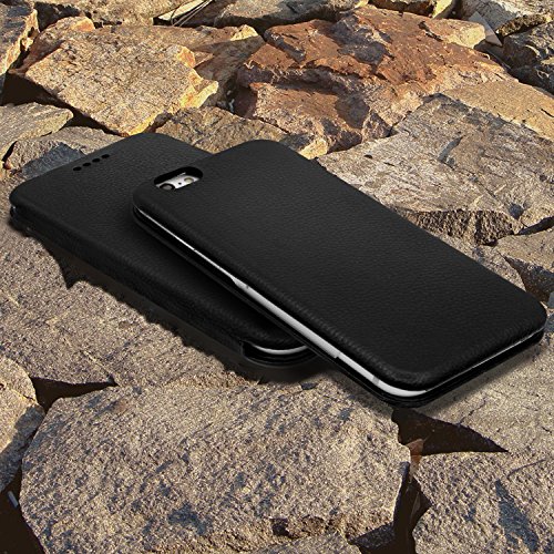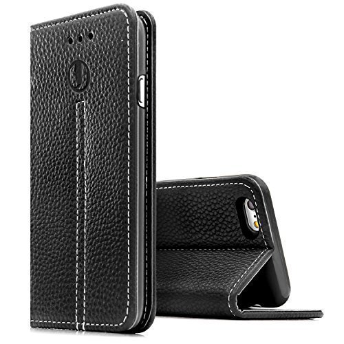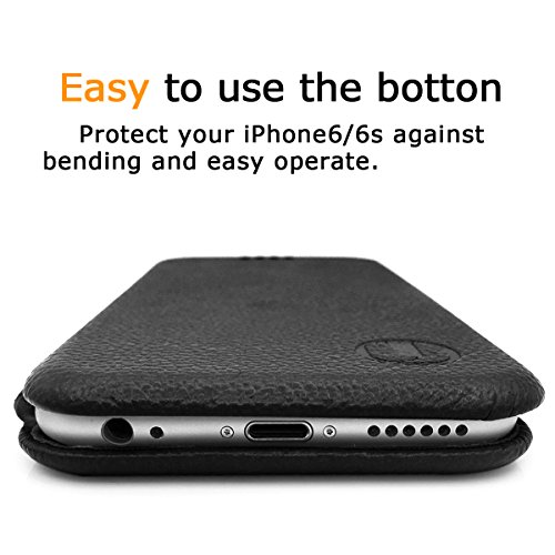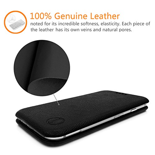 iPhone 6S Leather Case, Ubegood Premium Genuine Leather Case Slim design with Card Slot also as Apple iPhone 6 Leather case 4.7" Leather Textured (Leather Black)