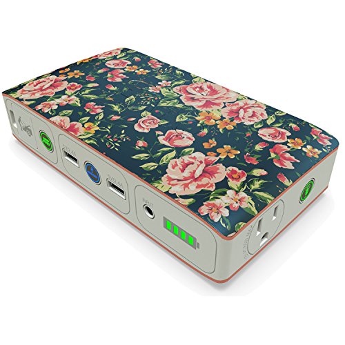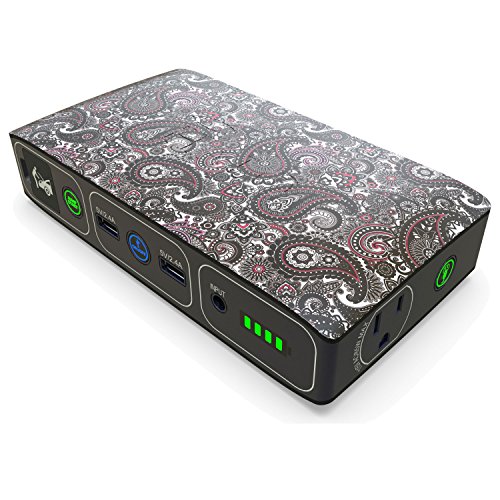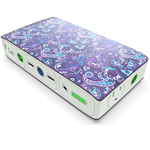 -. Feature : Phone, Tablet, and USB Power Bank - Never run out of battery! Two USB 2.4V charging outputs means this iPhone, Samsung Galaxy, or iPad Portable Charger powers multiple devices at once. / Universal Laptop Charger - Keep your Mac, PC, phone or tablet charged when traveling or use as a backup during a storm. 120V AC wall outlet powers your laptop on the go. Enough charge for 7.9 hours of battery life for a 13.3" Macbook Pro, 8.6 hours of iPad Air surfing, 19.9 hours on an iPad Mini, or 62.7 hours of talk time on an iPhone 7. See picture chart for details. / Portable Jump Starter - Battery trouble isn't an issue when your universal power bank includes enough power to jump start your car, boat, motorcycle or lawn mower, jumper cables included. Perfect for drivers who don't want to wait on the side of the road for a tow truck. / Stylish and Safe - Every portable charger has a fashion forward design, bringing safety back. Choose from Paisley, Floral, and Graphite patterns plus more. Everyone picks their flavor with this compact unit. / All In One Car Emergency Kit - LED flood light, battery jump starter, jumper cables, AC wall charger, carrying pouch and 2x USB phone charger all in one package. Know your teen driver or college student is safe.